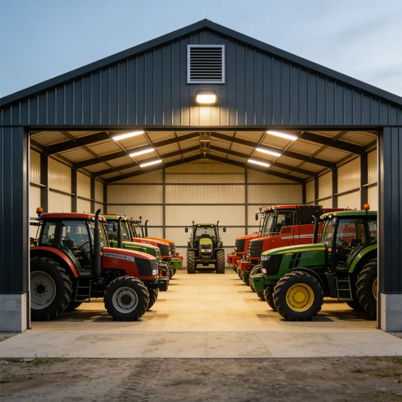 أجهزتك هي القلب النابض لمزرعتك، والتعرض البيئي هو أكبر عدو لها. تم تصميم سقيفة تخزين الصلب للآلات الزراعية Newforge بشكل احترافي لحماية الجرارات والحصادات والمزارعين من التأثيرات الضارة للأمطار المستمرة والثلوج الكثيفة والأشعة فوق البنفسجية والغبار الكاشط. من خلال الحفاظ على بيئة جافة خاضعة للرقابة، تمنع حظائرنا فشل الختم الهيدروليكي المبكر، وأكسدة الطلاء، والأعطال الإلكترونية. لا يعد الاستثمار في ملجأ Newforge الفولاذي مجرد تكلفة للبنية التحتية، بل هو خطوة إستراتيجية لزيادة قيمة إعادة بيع معداتك إلى الحد الأقصى وتقليل وقت التوقف غير المتوقع عن الإصلاح.