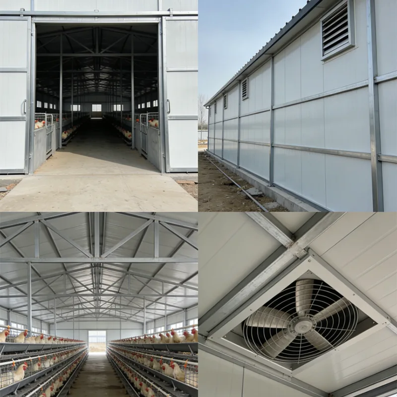 • تكوينات مصممة:تخصيص مواد العزل (للحفاظ على درجة حرارة ثابتة)، وأنظمة التهوية والتحكم في درجة الحرارة، وأنواع الأرضيات، وأقسام الأقلام، وقنوات تصريف السماد، وممرات التغذية، والأبواب/النوافذ المضادة للوباء بناءً على احتياجاتك الفعلية.