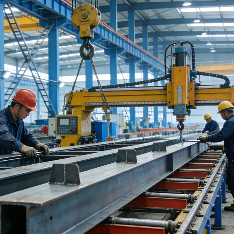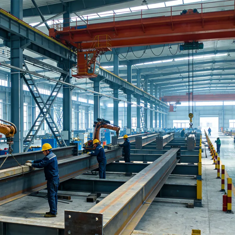 الأعضاء الفولاذية الرئيسية في ورشة تجميع الهياكل الفولاذية الجاهزة
